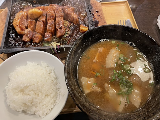 個人的に残念だったのは豚汁 味噌自体も赤味噌の風味が強いクセのある味でしたし脂身の多いバラ肉がたくさん入っているせいで脂が表面に浮いてかなりギトギトしていました おかず系味噌汁が好きな方には良いと思いますが個人的には箸休めになるようなあっさりした汁物が欲しかったです