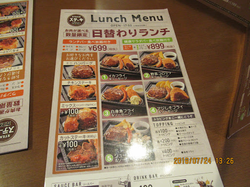 2024年5月12日の日曜日の14時に入店してハンバーグとサラダライスバーのセットを頼みました。ライスを1回目に取りに行った時に、本当少ししかなく、すぐ来るだろうから、また取りにこれば良いやと思って、その後、再度15分後ぐらいに取りにいったら全くなく、その後10分ぐらい待ってても補充されないので、ハンバーグが届いてから30分近く滞在しましたがライス一切食べれずに時間がないのと、店員に声かけようにも店員が他のことしてて話しかけることも出来ないので、ライスバーは何も食べてないのにお金を支払って帰りました。もの提供することも提供もされてないのにお金払わされるって本当に意味がわからないし非常に不愉快でした。 帰り際に店員に伝えようとして、すみませんって声かけても、他のことでバタバタしてて店員の耳にも届かずで、メインのハンバーグしか食べてないのに1300円ぐらいなのに、お会計2000円近く取られるとか本気で意味がわからない。あとメイン料理届いてから10分以上それがないとか料理冷めるし、提供出来ないならお客さんに事前に伝えるべきだとも思います。非常に残念なお店です。 店内は混んでる状況でもなく、自由に席を選べる状況でしたし、駐車場もガラガラな状態でこれでした。 単なる従業員不足か、店舗管理者がちゃんとしてないか、はたまた、単なる傲慢な商売や教育をグループ全体がしてるのかはわからないですけど。 近くの他の店舗行った方が...