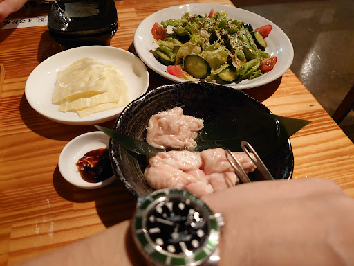 Read more2024/07/26 初訪店 入れなかったら嫌だったので、家を出る前に空席状況を電話。カウンターなら2名様OKとのことで、訪店。 もう19時になろうかという時間だったにもかかわらす、外は今だに体温超えの気温、一体どうなっているのやら…。 初めてのお店だからの失敗で、普通に1階のお店に「電話した〇〇ですが…」とズカズカと入っていってしまったところ、「は??」っと…。どうやら、目的の店はこの建物の2階だったらしく、謝罪して外階段を2階へ、初本シロコロホルモンに期待しつつ入店。 まずは生ビールに牛タン塩・牛ハラミ塩・シロコロを注文。 タン塩・ハラミはまあまあのお味、シロコロは網の上で火を通すと腸の形が出てくるしっかりしたもの。でも脂は凄い、でも正直硬いかな?と感じてしまって、焼き過ぎたかと思ってしまったほど。 実はそれがここいらのシロコロのようで、自分にはちと期待というか想像とずれた感じでした。 美味しかったですけど、まあまあだっ...