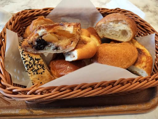 Read more追追記) 問い合わせをしたところ、モーニングの食べ放題のパンは焼き立てだけではなく、前日の売れ残りも(フードロス削減のため)出しているみたいです。 それならそれで構いませんが、わかりやすくしっかりとスタッフが口頭で説明したり、看板に売れ残りも提供する旨書いておかないと皆さん焼き立てのみが食べられると勘違いすると思います。 また、提供する際には『焼き立て』と『フードロス対策』のパンと見分けがつくよう出してほしいですね。 つまり前回行ったときは朝一番から1時間は『全て前日のパン』が出されていたということでしょう。完全に騙されました。どおりで、同じものが次々出てくるし冷たくてパサパサ美味しくないわけですよ。呆れました。 ーーーーーーーーーーーーーーー 追記)今日は残念な報告です。 2024/12/15日曜日 オープンの8時少し前に到着しました。 今日はモーニングの食べ放題を注文。 パンの種類はそれなりですが、どれも冷たくてパンは硬く、パサパサ。 あまり考えたくはないですが、昨日の売れ残りを出してるのでは?と思ってしまいます。 お店はというと8時にはほとんどパンは売られてません。 (→ですが、陳列されてない色んな種類の冷たいパンがどんどんモーニングに出てきます、、、) 帰りの9時頃にも半分も埋まっていない状況。オープンしてるのにこれはありえないですね。 ※オープン時間を10時にするor 出勤時間を早めるなど早急に対策した方が良いと思います。 また、メロンパンに関しては中が生焼けで論外でした。