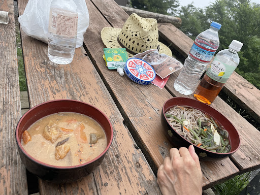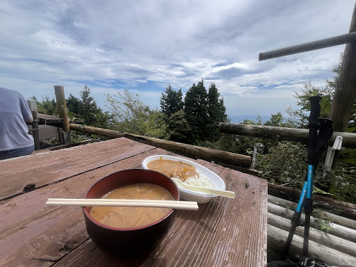Read more大山登山のランチに利用。茶屋利用者のみがテーブルベンチ使用と張り紙。少し歩くと一般利用OKのベンチがあるが、お昼時でそちらは混雑していました。どちらも長めは良いです◎ ペットボトルお水は400円、豚汁と山菜そばはそれぞれ500円、甘酒とおしるこはそれぞれ300円でした。 わたしは豚汁を、同行していた友人は山菜そばを注文。お店のおじさんは山の人らしく少々無愛想ですが、明るくきちんと対応してくれます(^^) 注文すると「出来たら呼ぶから近くで待ってて」と。七味とお箸は自分で◎ 豚汁は少し濃いめのお味噌で疲れた体に沁みます。お肉は少しですがお野菜がたっぷり具沢山、大きなお椀でボリュームもあります。行動食で持参していたおにぎりと一緒にいただきました。 山菜そばは薄いお洒落なお皿で、こちらも山菜がどっさり。お出汁の効いたま...