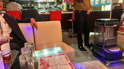 ◾︎雰囲気 アットホームな雰囲気で、忘年会にぴったりでした。店内は落ち着いた照明で、会話を楽しむのに適した環境でした。中央に大きなストーブがあり店内はとても暖かくソファーでくつろいでいると眠くなっちゃいそうです。