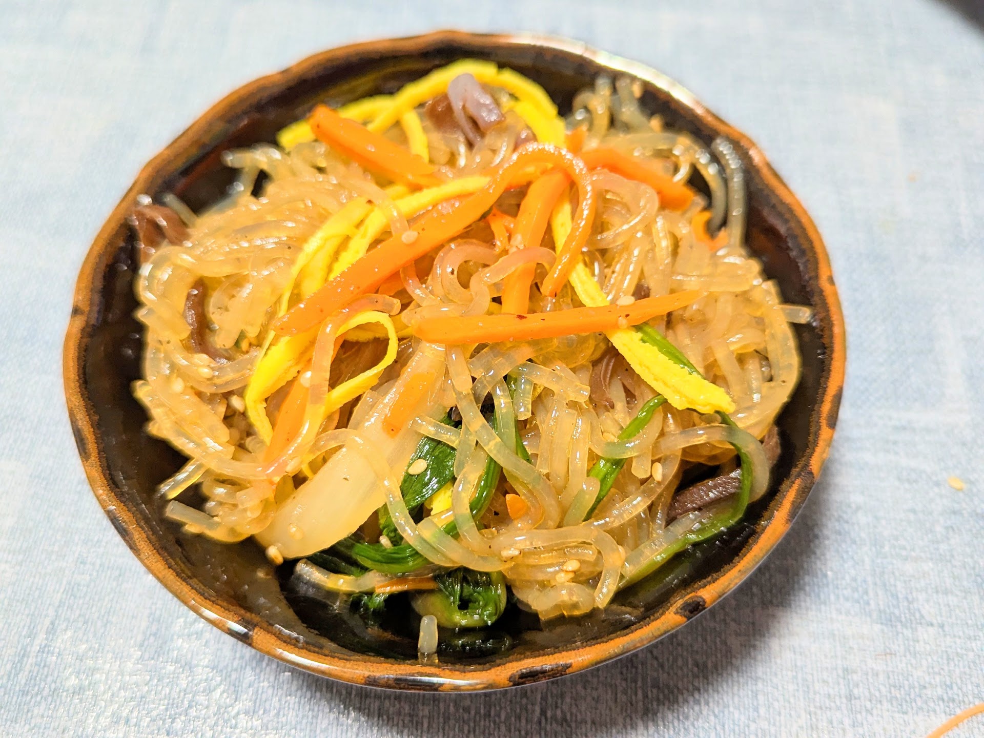 写真は明洞キンパ、スンドゥブチゲ、パック売りのチャプチェとタッカンジョン。 明洞キンパ以外はもう2回りくらい大きいサイズ感です。