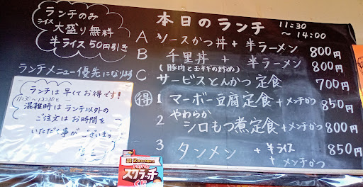 『Aランチ800円 ソースカツ丼と半ラーメン』 『Bランチ800円 千里丼と半ラーメン』