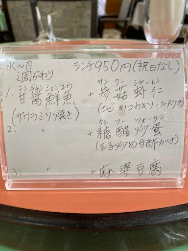 Read moreJR伊勢崎駅近くにある中華レストランです。ちょっと飲食店が無さそうな感じのところにあります。ランチもやってますが、本格的な中華料理もメニューにあります。 ランチの麻婆豆腐はコクがあり美味しく、辛さもちょうどいい。もう一つのおかずはサバを揚げた料理でしたが、小骨もきちんと処理されて、衣はパリパリで、大根おろしのソースと相性バッチリ。ライスとスー...