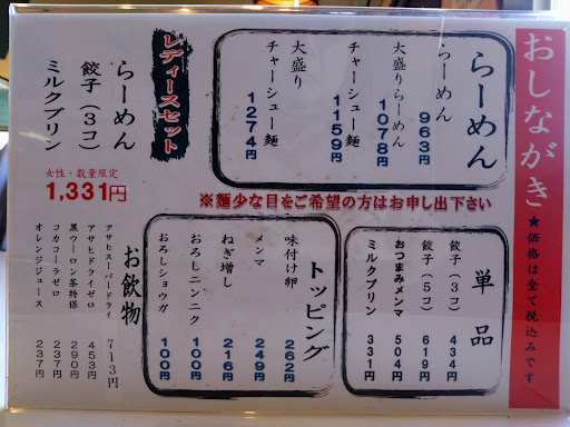 2025年3月上旬平日、ランチタイムに久々の訪問。遅めの時間だったため待たずに着席。限定のレディースセットを注文。ラーメンの量が通常より少なく餃子3個とミルクプリンのデザートがつく。お腹いっぱいになる量。デザートはおくちサッパ...