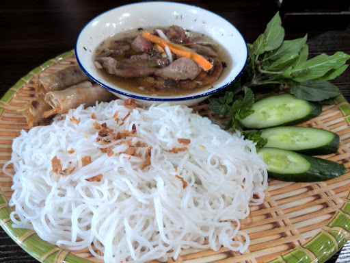 ちょいと伊勢崎へ。「伊勢崎と言えばペルー料理」と思い INKA WASI に行ったらクローズ、ということで直近の ANNAM QUAN へ入ってみました。実は期待値は高くなかったのですが、本場に近い凄い料理が出てきてビックリ。ベトナム語で書かれたメニューブックには、バインミー・フォーガー等のド定番から蛙と辛筍炒め・ヤギ肉にんにく炒め等の超レア系まで80種類以上並んでいます。 ブンチャー(¥1050):迷いつつも初回ということで、難易度ミディアムのブンチャーを選んでみました。出てきた一皿は香り立つスープと明らかに本物ハーブと分かるビジュアル。都内ではハーブを外す店もあるので、「マヂ本物やん!?」と呟いてしまいました。つけ汁も本物で、独特の魚醤系出汁感の上に酸味と甘みが綺麗に乗っていて、メチャクチャ美味い。もちろんハーブは適宜のタイミングで葉をちぎってつけ汁に投入し、変化を付けていきます。そのつけ汁に麺を浸し、肉と一緒に食べ進むと、マヂで本当にメチャクチャ美味い。副菜のミニ揚げ春巻も丁寧な仕込みで、汁を染み込ませると極上の副菜になります。 完璧仕込みのスープに本物ハーブと丁寧副菜が揃って税込1050円は信じがたく、外国人定住者の増加に連れて本物の料理店が増えているという伊勢崎の噂は嘘ではないと確信させてくれました。道路を渡って反対側には Sen Vàng...