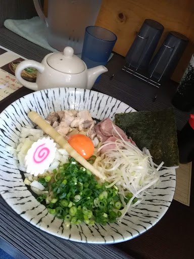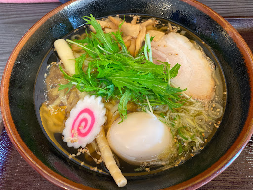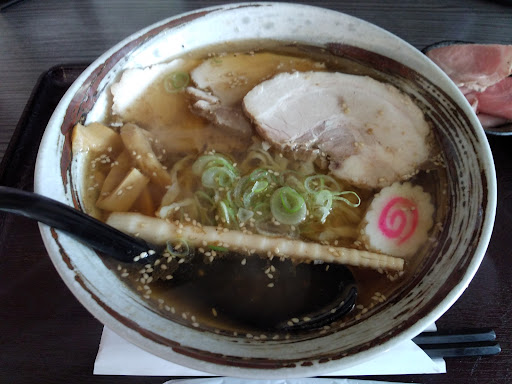 Read more仕事で当地を訪れた際に訪問。 平日のお昼時、テーブル席は満席もカウンター数席空いていて待たずに着席。 この日は券売機に人気No.1と貼り紙されていた「わこん正油チャーシューめん」を頂きました。1150円也。 「わこん」とは?と思ったら店内のメニューに「和魂」と言うことらしいです。鰹+鶏+豚のトリプルスープだそうです。 スープは確かに一口目でフワッと鰹出汁が香ります。醤油感は少し弱めに感じます。 麺は平打ちの手揉み麺のようで茹で加減、食感、味わいすこぶる良いです。かなり好みの麺でした。 合わせる具材は、大き目厚めの切り方でかなり食べ応えあるチャーシューが3枚。メンマに筍の先っちょ(なんていうのかな?)に刻みネギにナルト。 スープ、麺、具材、どれもすこぶる美味しいです。 お店自体は大きくないもののテーブル、カウンター、席間広くて広々感じます。 お店の方の接客応対も感じ良いです。 お店の前に駐車場もあって、使い勝手も良いです。 この辺りに頻繁に来る事は無いですが、来る事があれば再訪必至!のお店です。