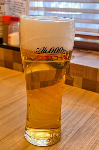 今日は早い時間からお客さんがいっぱいでした。 家族連れが多いです。 主人はいつも とりあえずセット🍺を注文して 運転する私はゼロ生🍺からスタートします😄笑 このお店はノンアルコールビールのゼロ生 クリーミー泡仕立て生感覚!があるので嬉しいです☺️笑 飲みたくても運転なので笑