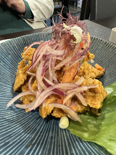 Read moreCevibhe Lima18(魚、イカ、カニ、タコ、ムール貝のマリネ) Fetuccini a la huancína con lomo(イタリアンパスタ+ジャガイモとチーズ を使ったソース+牛肉・玉ねぎ・ トマトの炒め物) Anticuchos (2 palitos)+ Rachi+mollejitas(牛ハツの串焼き(2本)+モツ(ハチノス)+...