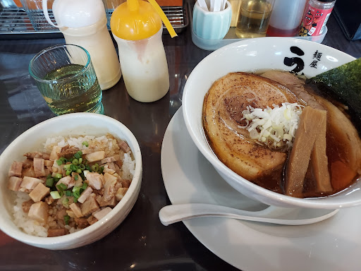 Read more日曜の13時過ぎに訪問。 先客は3~4人いらっしゃいました。 カウンターに着席。 カウンターは4人掛けくらいだったかな。 塩ラーメンと玉豚丼を注文し 麺は細麺、ちぢれ麺、太麺から太麺をチョイス。 10分足らずで着膳。 塩ラーメン美味しいです。 また食べたい❗ アッサリですが濃いめな塩味。 食べてて飽きません。 玉豚丼は温玉が真ん中に乗っててその周りを刻みチャーシューが囲んでるイメージですかね。 カラシマヨネーズとマヨネーズがトッピングでついてきましてカラシマヨネーズをかけてみました。 これまた美味しい❗ また寄ります。 2023.2.12追記