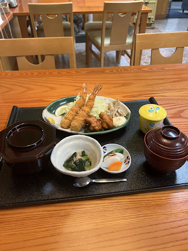 料理を見ましたが、価格に似合ってないかな😔 ご飯の量は多いのですが、海老フライ、唐揚げが大きくありません。 茶碗蒸しがついているのは良かったです。 タルタルソースと辛子は良心的な感じはしました。