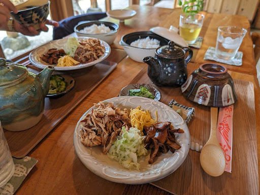 建物店内は表しの天井で石垣島の古民家の雰囲気で落ち着いて持ち時間も楽しく食事を引き立ててくれます。 庭も綺麗に手入れされているので、多分料理にも手を掛けられていると思うと期待値上がります。 鶏飯をいただきました。 品数も多くボリュームもあり大満足です。 デザートも手作りされており、間違いなかったお店です。 ランチだけでなく少し贅沢なお茶時間を過ごせるいいお店です。 ま...