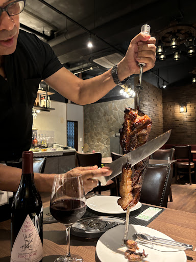 石垣島出張中、同僚が事前に調べてくれていた。口コミでも評判がよさそうだったので訪れてみた「BRASINHAブラジーニャ」。こちらのシュハスコは、ブラジルから取り寄せた専用の器具を使って焼き上げる本格スタイル。植物と絵画でゆとりのある店内はワンランクの上の空間で素敵な思い出にぴったりの雰囲気でした。 店内では、美男美女のブラジル人スタッフが陽気な笑顔で迎えてくれ、まるでブラジルのレストランに来たかのような雰囲気!フレンドリーな接客と楽しい会話で、食事がさらに特別な時間になります。 上質なシュハスココース!贅沢な11種の選ばれし絶品肉 お皿のお肉がちょうどなくなるころに、ちょうどいい焼き加減で運ばれてくるシュハスコは、お肉好きにはたまらない。中でもガーリックステーキ、牛フィレのベーコン巻き、ランプ、イチボなどミディアムレアに焼かれていてどれもジューシー。シェフが目の前でカットしてくれるサービススタイルも贅沢。ブラジル人シェフと楽しい時間を過ごせました。 サラダバーには絶品のソースも準備されており、激辛ソースとグリーンサラダとお肉を絡めて食べると口いっぱいにお肉の旨みと辛さが混ざり格別なバランスに。ワインとのマリアージュが最高です。ズッキーニの炒め物や、パパイヤサラダ、セロリサラダ、トマトなど、お肉と合わせていくらでも食べられるのが最高。石垣島の紅芋を使った「紅芋サラダ」は、ポテトサラダのようにマッシュされていて、中にシャキシャキとフレッシュな食感のお野菜もたくさん入っており格別。お肉と一緒に食べると最高。やみつきに。 シュハスコと合わせたのは、赤ワイン「オーボン クリマ...