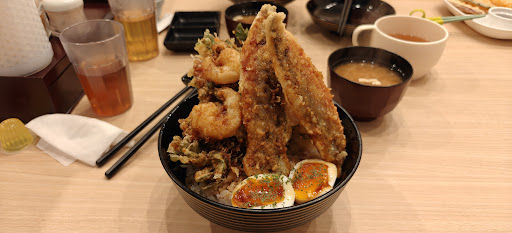 Read moreDespite being located inside the Japanese equivalent of WalMart, this small place has the absolute best tempura I have ever had: light and crunchy, meat or seafood with a variety of fresh vegetables, and even a battered fried egg! If you sit too close to the door, you will hear the Don Quixote store's infamous jingle throughout your meal. My wife agrees the tempura is fabulous - better by far than high priced places! Cannot believe this quality food is so...