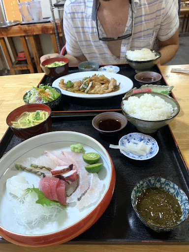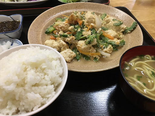駐車場は団地の方に有る! 私は車を前に止めてから店員さんに聞きに行ったよ 席数も多く無いけど快く受け入れて下さった、感謝! 鶏唐揚定食は皮パリパリ中ジューシーめちゃでかい。。。。付け合わせに刺身が3切れ付いて来て、目が点になり、ご飯てんこ盛りを減らしてもらうの忘れたちゃった ゴーヤチャンプルー定食はゴーヤの苦味も無くて美味しい、八重山そばも食べたいなって思ったら、ちっちゃいお椀に八重山そばが有ってラッキー! 私の地元にこんな店があったら...