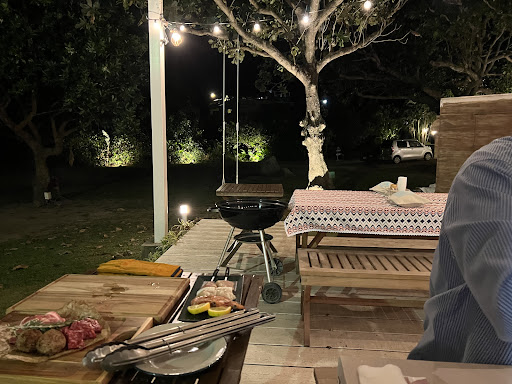 Our only challenge was figuring out where to park, there was a sign but we were still hesitant to drive past the wall, as there weren’t any cars, another reason to thank the bad reviews. Then we didn’t know where to go. We walked to the beach and saw the teepees. Then wandered through an arch, and a beautifully lit lawn back to the restaurant patio, where we were greeted and seated.