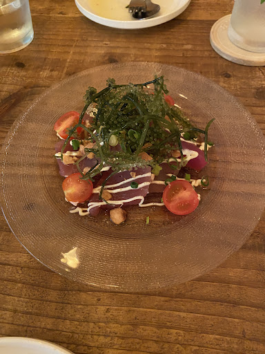 私が食べたものは 島らっきょうのアヒージョや豚の燻製ソテー、前菜のもりあわせ、マグロと海葡萄のカルパッチョ、まぐろのカツレツなどなど おなかいっぱいでパスタ食べられなかったのが心残り