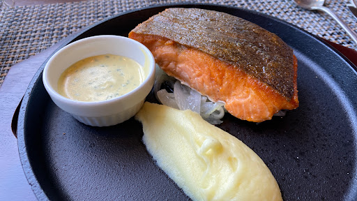 今回はサーモンのポワレ(200g)をチョイス。皮がバリッと焼き上げられ、しかし、身はホロホロしっとりと柔らかく、大変良い焼き加減。
