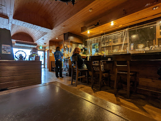The interior of this cafe is reminiscent of the cabin of a medieval wooden sailing ship. The slightly darker lighting settings make a relaxed atmosphere, and (perhaps due to the time of day we used the cafe) there are not many customers chatting, making for a relaxing experience. The dishes and drinks served are mostly the same as those found in many other pure cafes (there are a few dishes that are unique to this cafe or the area, such as "Agarasa (brown sugar steamed bread)"). The seasoning is orthodox, and there is nothing eccentric about it. Regulars sometimes come in, and the staff sometimes chats with them, but only when they are free, and there is no disrespect for the other customers. The entrance and exit is a manual door, which may be somewhat difficult for wheelchair users and other physically challenged...