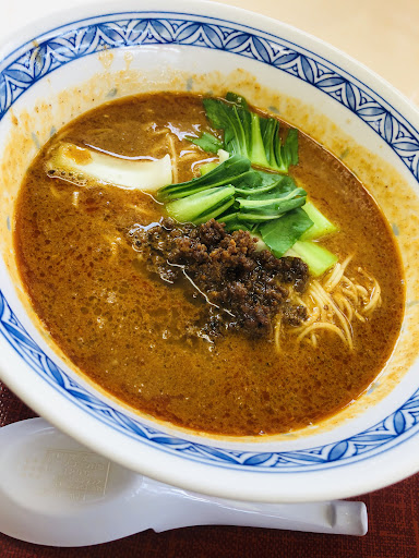 Read more看板にも大々的に表に打ち出している看板メニューの坦々麺をいただきました。ゴマの風味がとても良いです。ゴマ好きには納得のゴマ感のある坦々麺だと思います。スープはすり下ろしたゴマがかなり溶け込んでいるのかとろみがあり濃厚です。麺がストレートの細麺なのでスープがとてもよくからみます。それなりにピリ辛味なので勢いよくすするとむせ込みます。辛さが苦手な方はこれは結構辛いかと思います。激辛のジョロキア入り坦々麺がメニューにありましたがこちらは中々勇気がいるメニューだと思いましたが、辛さが好きな方や辛味のある坦々麺が好きな方にはたまらないものがあるのかも知れません。お友達が天津飯をいただきましたがしょっぱいらしいのでお料理により当たり外れもあるのかも知れません。ニラもやしラーメンがありましたがお味予想で名古屋の台湾ラー...