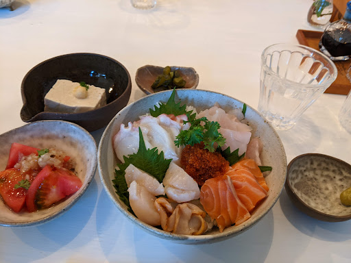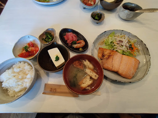 Go hungry! 3 or 4 fish-based set lunches - written in Japanese on a wall board. You'll get an array of locally sourced foods - including clumpy, rich Atsuta tofu - all served on tableware made by a potter friend. Country kitchen feel with wood and...