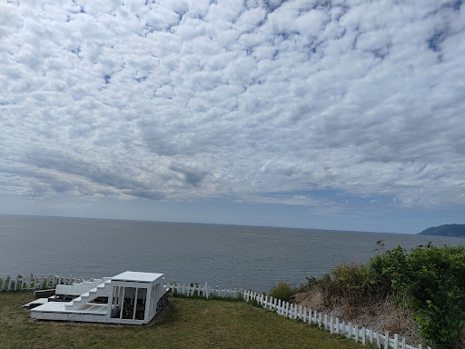 Read moreバイクで頑張って入りました。 砂利なのでとても緊張しました。土が柔らかいのでバイクは埋まって倒れてしまい止めれないので砂利が固まっている建物の右側に停めさせてもらいました。道路から入った入り口でお店の方が順番待ちの受け付けをしていました。 カーブとカーブの間にあるので緑の屋根を見ながら走ってくると通り過ぎてしまわないかと思います。 テラス席は数が少なくて8組かな? 座る事ができます。パラソルはお店の方が開いてくれるので待ちます。 パンケーキは蜂蜜とキャラメルを頼みましたがフルーツの方が運ばれてきてしまい時間もかかるのでそのまま戴きました。パンケーキがとてもしっかりとしていながらも、ふわふわで柔らかいので蜂蜜やキャラメル等のシロップをかけた方が美味しさが伝わりパンケーキと合う様に思えました。 フルーツは新鮮で冷えていてお腹いっぱいになりました。お祝い事には喜ばれると思います。 ホント、形崩しないで上手に焼いてます。 生クリームも溶けたりしないです。 パンケーキの熱さを考えながら作っているのだと思われます。パンケーキは1300から1700円ぐらいでドリンクは600円前後でした。 テラス席では必ずお食事とドリンクの両方を注文する事になっておりました。 中でも海を見ながら食べる席はあります。 また、食べに行きます。 海が見えるカフェは素敵なひと時でした。 時間があればのん...