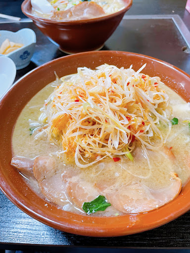 Read more和渕の神取橋付近に有る昔ながらのラーメンをいただける御店です。 駐車場は広めですが、どうみても地域密着形の御店。 たまたま通り掛かる様な立地では無いので、知り合いに教えれるか口コミで見掛けるか以外は土地の人を主に相手に商売されているイメージ。 実際に御昼時に訪れて自分達以外の御客さんは、年配の方がほとんどでした。 ただ大分、繁盛していました。 どうも味噌ラーメンが絶大の人気を誇っているようで他の御客さんの注文も7割味噌ラーメンかネギ味噌ラーメンの様に感じました。 他の方の口コミでは味噌ラーメン550円との事でしたが、自分が訪れた際には600円と50円の値上がりの様でした。 同様にネギ味噌ラーメンも650円となっていました。 ラーメンの具材にキャベツでは無く白菜が入っていたのが気になっていましたが、メニューに餡掛け固焼きそばが有ったりするので、もしかしたら乗っかる具材は全メニュー共通なんですかね? 麺は太麺でやわらかめでした。 チャーシューは自分の苦手なタイプでしたが、それ以外はスープも含めて、凄く美味しいと感じました。 混み具合も納得です。 それ以上に美味しかったのは牛丼! 訪れる機会が有ればラーメンと一緒に是非。 普通盛りとミニが有るのでラーメンと一緒に食べるので有ればミニがお薦めです。 お腹一杯になりますよ。 今回食べる前の写真を撮るのを忘れてしまい、一応箸を付けた後に撮って見たものの・・・やはり見た目汚ないので店の写メノミで。 御店切り盛りしてる、お爺ちゃん、お婆ちゃん達の人懐っこい感じもクチコ...
