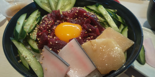 Read more出発が遅くなってしまったので、コバルトラインを通って到着したのが午後3時過ぎ。以前に伺った建物の奥にある「なぎさ」さんへ伺い券売機前で財布を出そうとしたら店内から「もう終わっちゃいました」と。テーブルで食事している人がいるのに何で?? テーブルに座ってる人たちは従業員さん達でした(笑)諦めて戻りながら他に営業しているお店は……こちら「黄金寿司」さんは大丈夫なようです。店舗前のメニューで「鯨のユッケ丼」1.200円がお手頃で美味そうに感じ入店。きゅうり、多めに見えますが鯨肉は食べ応えもあり充分な量です。付け合わせも美味しく、お吸い物もシッカリとアラから出汁を取っているようで美味しかったです。また行かなくてはならない用事が出来てしまい...