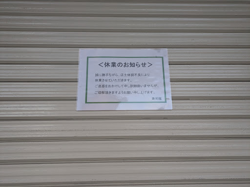 Read more久々(はっきり言って東日本大震災後初)に行ったら臨時休業のお知らせの紙が貼ってありました。 びっくりポンですわ(@_@;) 震災前は、会議で仙台に電車で行った時は、年数回ですが、寄って食べて呑んで歩いて帰ってました。(家まで40分) 今は石巻あゆみ野駅(歩いて20分)が最寄りの駅ですが、当時は蛇田駅でした。 一日も早いご回復を願っております。(旨いお寿司を握...