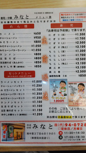 Read more気になって来店!入るまでは緊張あり!寿司、中華!?って文字が戸惑い(^^) 棚にある立派なお皿が目立つ店内で席もキレイでした。 メニューがちょっと少なくなったのかな? ご飯物の提供が無く、お寿司はセット以外は予約制の記載あり。 タンメンを注文!印象は胡椒の記憶が残る。 後もう1つ何か旨味が欲しいのと硬めの細麺だったら通うかも!リーズナブルで嬉しい(^^) 味噌ラーメンにお寿司セットも面白い! 焼きそばも気になりました(^...
