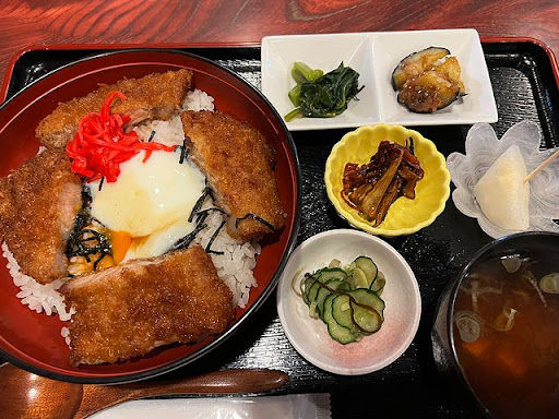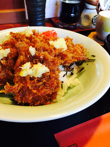 写真は、温玉タレカツ丼1,200円です。 飯野川付近はサバだしラーメンとタレカツ丼が有名ってことで、こちらのお店のお勧めを頂きました。 たれカツって甘くて油っぽいイメージ(個人の勝手なイメージ(´┐`))でしたが、こちらのはカリッともしていて味付けも美味しかったです。小鉢も色々あって楽しめます。 他のメニューも食べたくなりました。ご...