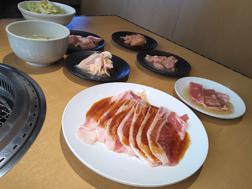 2回目の来店。平日の昼過ぎなら余裕で入れます。平日なら予約しなくても昼を避ければ大丈夫だと思います。土日は不明です。ランチコースだし焼きやすいから良いのだがほとんどの肉がペラペラ、値段を考えたらこんなものでしょう。気になったのは食べ放題のせいか、タッチパネルの注文履歴からメニューの何を頼んだのか表示されないので何を頼んだのか何が来てないのか全く分かりません。肉の枚数が1枚少ないのも来たが店員の間違いか?こちらの気のせいだろうか?注文してから来るまでの提供スピードが早い時と遅い時がある。来ない時は全然来ない、そこまで待つわけではないが。。。店員の態度は悪くないが、年に1回来店すれば良いかな