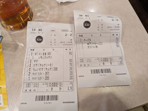 大型の書店の広い駐車場にあるガスト。駐車スペースには困らない。出入りがカーブしている内側になるので、出るときはちょっと気をつかうかも。広めの店舗で席も多く、ゆったりとした感じ。スタッフも気持ちよく対応してくれる。ガストなので、いろいろと自動化が進んでいて、注文はタブレット、配膳はネコロボット、会計はスマホアプリでも可能だし、レジでもセルフで支払い可能。人と会わないでも済みそうなシステムはやはりすかいらーく。アプリを使っているとけっこういろいろなクーポンが出ていたりするので、お得に食事ができるのでお勧め。支払いも完結できたりするので、そこも便利。ドリンクバーやスープバーのコーナーも充実していて、意外と満足感高め。フリーWIFIもあるのでゆっくりするにもいい。年配の方や主婦の方の...