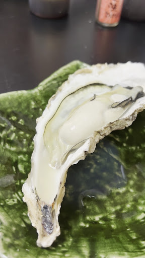 契約漁師さんから仕入れしているカキ小屋です。 ホントに小屋って感じの趣ですが、中は暖房が効いてました。お値段は10個で3000円程度~の価格帯です。 生牡蠣やガンガン焼き、他ワンドリンク注文お願いしますの表記がありました。 3人で来店させて貰ったため本来牡蠣を分け合うのに端数が出てしまうのですが、なんと均等に分けられる様にこっそり増量してくれてました。(´ω`)これは嬉しい