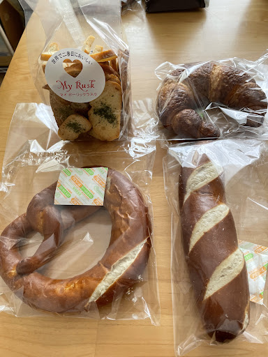 Read more店内は狭いです。駐車場と言うより、お店寄りの空き地に車は置いて置けると思います。(心配なら、店主に確認してください) プレッツェルは、割とソフトです。ドイツに住んでいたのですが、食べ慣れたものとは少し違う感じでした。岩塩も周りには付いてないです。店主に聞くと船便でドイツから来るそうです…どのような形で送られてくるかは不明です。ベルギーのクロワッサンを食べました。甘めで、クロワッサンと言うよりデニッシュ的なパンです。...