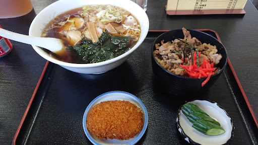 ラーメンセット(焼肉丼とラーメン、コロッケと漬物付き)¥900 野菜ラーメン¥600 をいただきました。 焼肉丼はちょっとしょっぱいけど、タレが美味しい。 野菜ラーメンの野菜は、本当にいっぱい入ってて、大満足。しょうゆ味でほどよいあんかけです。 ラーメンは細麺です。 近くに行ったら、ぜひお寄りください。 コスパが良いし、まったりとした空気が流れるお店です...