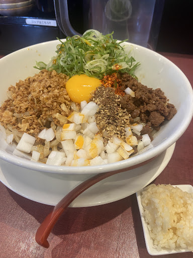 予定変更じゃ〜((=゚Д゚=)ノ 汁なし担々麺(冷)麺1.5(無料)山椒多め、唐辛子普通、ニンニク有り、ネギ、卵黄トッピングでお願いしましたよ。 目の前通過していった汁なし担々麺。めっちゃ本格的な見た目が美味しそうだったのよね。 一期一会ならぬ、一期一麺。 いや2杯目やから、一石二鳥ならぬ、一石2杯かな!? しばらく待っていると、、、