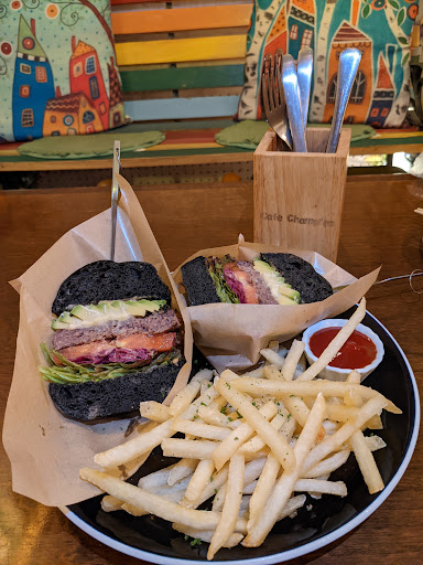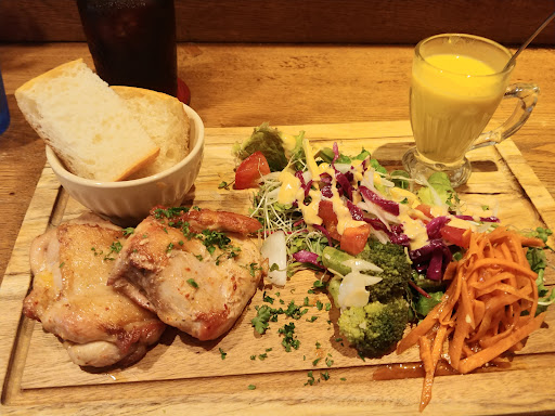 Read more二度目の来店・・・ 前日はクリームソーダをいただき、いろいろと気になったメニューがあったので再びの来店・・・ 本日のポタージュとブラックバーガー、前菜ごちゃごちゃチャンプループレートをいただきました! まず、こちらのお店は24まで営業されてて、伊丹のカフェではありがたい存在! メニューも結構豊富にあり、いろいろと楽しみです。 今回いただいた前菜ごちゃごちゃチャンプループレートはとってもお得感ありです。 いろいろな味を少しずつ楽しめるのはとても嬉しい! 本日のポタージュはカボチャでした・・・ ただのカボチャのポタージュではなく、シナモンの香りいい・・・ ただ、好き嫌いはあるかもですね。全般的に味、コスパともにいいと思います。ポタージュも美味しかったです。ただ、食感がもっとなめらかだったら最高でした・・・ バーガーは、バーガー専門店ではない事を考慮すれば、旨いものを出していると思います! バンズ、パティ、野菜、ソース・・・ 個々はいいと思います。パティは粗挽きで好みは分かれるところですが、このお値段なら十分。竹炭のバンズも黒い見た目とは違って美味しいです。ただ、バーガーとして食べるときは、話は別です。個々の個性が結構主張してて・・・ バーガーは、パン、サラダ、ミートとして、味あうのとは違うから、難しいですよね。 バーガー好きとして、辛口な事を言いましたが、カフェとしてはまた行きたいお店で、是非、他のメニューもいただきたいと思いま...