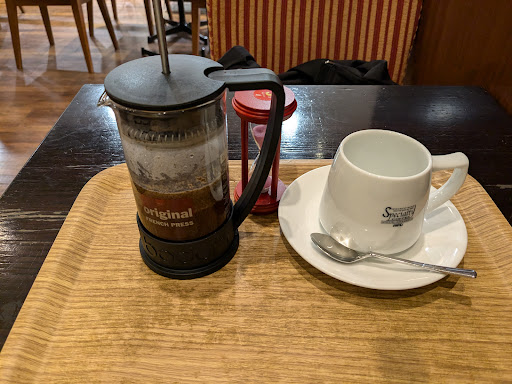 昨日は、誕生日チケット持参で、買い物帰りに昆陽店に立ち寄りました。 モカを注文しようとしたら 店員さんから、 ✨ブラジルゲイシャ✨をすすめて頂き、始めての豆でしたが飲んで見る事に‥ドキドキ😁 3分砂時計が終わったら ゆっくり押さえて‥っと説明を してくれて‥ 紅茶はあるけれども この入れ方のコーヒーは初でしたので‥ 少しワクワクしながら‥ 一口目はうーん?少し苦い?と思いましたが ふた口目からは👍 モカより、少し濃くて ほんのり甘い豆で👍👍👍 おしゃれで美味しい🥰 こちらも良いと思いました。 オススメです😉