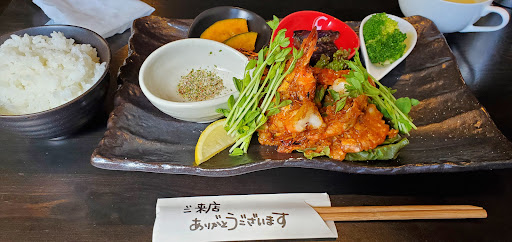 再訪。今日はシュリンプのランチで。スパイシーで味付け最高。ご飯おかわりできるが、ダイエットなのでやめておいた。ご主人さんは、本当に美味しいものに対するこだわりや、パッと出た時の見た目とか、こだわりが感じられる。センスもいい。 店内のイメージが、コンクリート打ちっぱなしなので、モダン過ぎるかも。長く居づらく、女性同士では入りにくいかも。この料理なら、女性のランチの人...