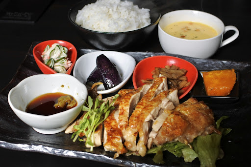 ◆鶏肉ステーキ柚子胡椒ポン酢 価格 900円 最初にコーンスープから頂き、美味しいスープで気を良くしてるとトウモロコシの粒がめっちゃたくさん沈んでた! こんなにたくさんコーンを入れてありがとう♪ メインの鶏肉はもも肉1枚分? 結構なボリューム。 鶏肉の他には茄子の煮浸し、胡瓜とカニカマのマヨネーズ和え、きんぴらごぼう、かぼちゃの煮付け。 肉を一切れ柚子胡椒ポン酢につけてパクり♪ 肉質は少し硬めかなぁ。 でもポン酢とピリリと刺激の柚子胡椒が効いて美味しい。 塩胡椒を吸って焼いてるのでそのままでも美味い。 何より皮目の焼き色が良く風味が広がる^...