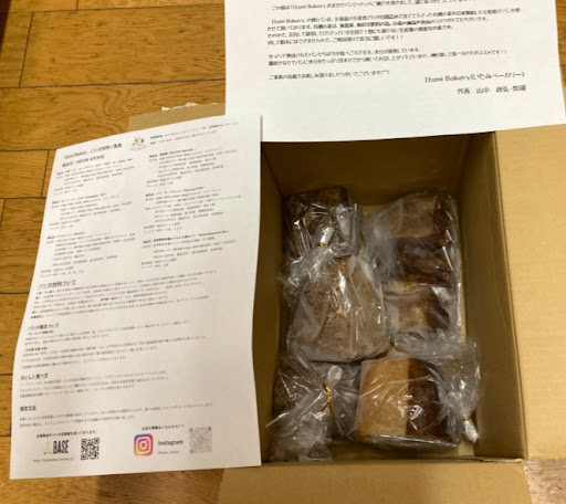 国産小麦やライ麦などこだわりの厳選素材で自然派のずっしり どっしりとしたハードパンが非常に魅力的なお店の画像をInstagramの投稿で拝見しておりました。 大阪の実店舗には距離があり伺えそうになく通販でお取り寄せしょうかなっと思案中7月2日に京都の長岡京駅のバンビオ公園で開催されているマルシェ【バンビオものづくり市】に出店されているのを知り朝から車を飛ばして行こうかと思いあぐねていると昼ごろ猛暑日で客足が少なくゲリラ便を急募されている投稿を目にしてすぐにBASEの🔗リンクから購入させて頂きました(^^) 丁寧なDMでのやり取りから実直なお商売への姿勢を感じました。 クール配送を指定して翌日到着しました。 ハードな茶色いパン達の姿に最近ハードパンの魅力を見い出しハマっている私は感動しながら手にしました。