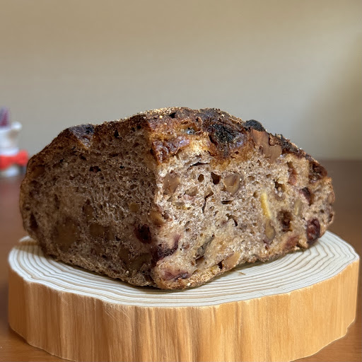 そのいただいたパンはパン・オ・フリュイ、生地の中には有機レーズン・有機クランベリー・有機くるみ・無農薬伊予柑ピール・柚子ピールが入っていて有機栽培、無農薬栽培にこだわったいろんなフルーツなどを入れた贅沢な食事パンということで、ハードな食感の生地からはレーズンの甘酸っぱさとベリーなど柑橘系の酸味、それに香ばしいくるみの食感などいろんな味わいが楽しめておもしろいですね...
