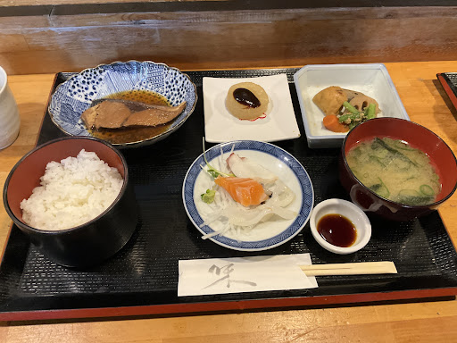 メイン料理は今日はアジフライと付け合わせの🥗、それに小鉢のきゅうりとクラゲの酢の和物とそれにさらに刺身3切(サーモン、生だことカンパチ)がついて、ナスとにんじんの炊き合わせとかなりバランスが良いですね⭕️🙆