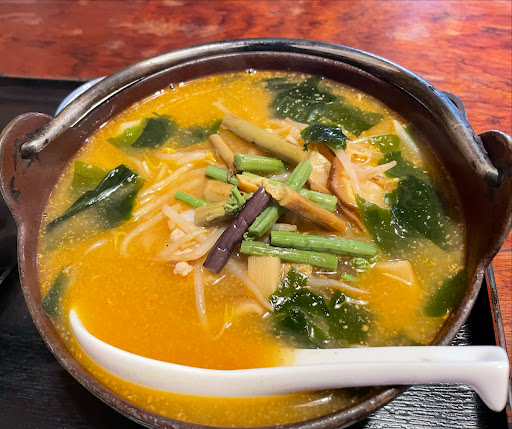 よく食べるのは「突撃ラーメン」🍜 山菜たっぷりの、ピリ辛ラーメンで とにかく具材がたっぷり入っており、 値段に見合っていないくらいボリュームがあります。 山菜と辛味噌の組み合わせがめちゃくちゃクセになります。
