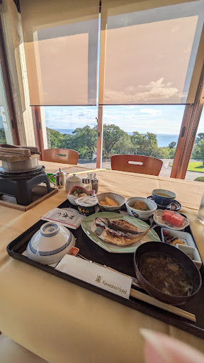 2回目 ディナー ACCESS------------------------- ◆住所 静岡県伊東市川奈1459 川奈ホテル 本館1F ◆アクセス 伊東駅よりタクシーで15分ほどです ◆営業時間 朝食 6:45A.M.~10:00A.M ランチ 11:00A.M.~3:30P.M ディナー 5:30P.M.~9:00P.M. ◆定休日 ホテルに準ずる ◆ドレスコード スマートカジュアル 新鮮な魚介類を活かしたメニューを、おつまみ・一品料理・ご定食で、和洋で楽しめます ORDER----------