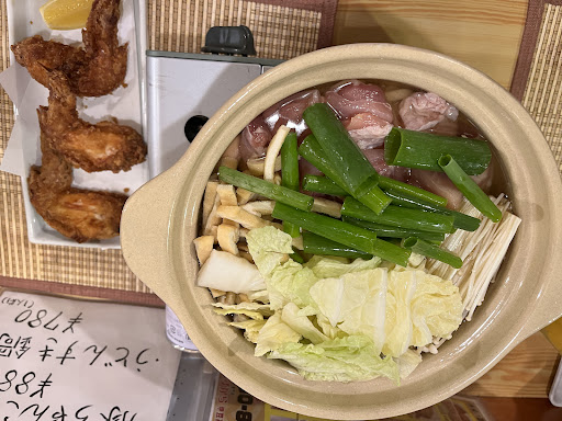 We were looking for home cooking in a mom and Pop restaurant – we found it in Izukara restaurant!! it is tucked away in a corner near other restaurants, there was a lot of parking. we went with their udon suki nabe, from their written menu that is an order for 2 people minimum(what price per person). it is cooked as a hot pot in front of you. You definitely definitely need to order the fried chicken wings, which were so crunchy and delicious, we had to order wings to take back to the hotel! It’s perfect to order the wings so you can eat that while the hot pot starts cooking. The udon noodles were silky and delicious, and the broth was savory enough to just drink on its own, which we did. The husband and wife who run the place were so sweet and personable. The only thing that made it more perfect was getting baked goods from the store next-door!😁 great price, delicious food! 2 orders of four piece, chicken wings, two draft beers, and a shared hot pot came to $30...
