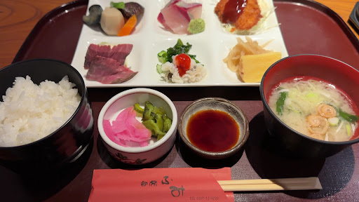 Read moreお客様があったため、おすすめの会席コース雪と月を予約して4名で夜に出かけました。出てきた料理は私の知る会席料理とはほど遠いものでした。ランチで出るようなサラダや煮物などの小鉢が乗ったお膳に刺身も乗って、定食のように置かれます💦季節感や彩りの葉物のあしらいなど一切なく、料理の説明もありません。お刺身だけ8500円の雪コースはヒラメの薄造り、6500円の月コースはランチのお造り定食と同じもの。このお膳が先付??かなと思いつつ次のお椀を待ちましたがどちらのコースにもメインのお椀は出ませんでした💦そして月コースは居酒屋メニューのような小さなカマ焼きと極小牡蠣が3、4個だけ入ったしぐれ鍋(どちらも塩味のみ)でコースは終わりでした。雪コースには千切りキャベツにマヨネーズののった小さなカキフライが2個💦そして揚げ出し豆腐とヒレ肉、お寿司と、まだマシでしたが8500円と言えば伊豆高原ではちゃんとしたお料理がいただける値段です。味噌汁やおしんこもランチ定食と同じものが出て、伊豆の美味しいものを期待して楽しみにタクシーでいらしたお客様に申し訳なく会話すら出来なくなってしまいました。特に月コースは塩味だけの料理がわずか2品、(私もいただきました😭)揚げ物も蒸し物も酢の物もなく、あまりに貧相でお客様(奥様)に申し訳なくてご飯も喉を通りませんでした。安価なランチ定食の残りと夜のアラカルトの料理を適当に出された感じで、会席料理らしいものは一品も出なかったことをお伝えしたく書いています。ならばおすすめ会席と書かず、予約の際も"コース料理はできないのでアラカルトでお願いします"と言うべきかなと思いました。常連の方はそう言うお店だとご存知なのでしょうが、知らないと我が家のように間違って接待に使ってしまいます。 美味しいお刺身をお酒と一緒にカジュアルに楽しむ居酒屋さん、または定食ランチのお店だと思います。 だとしたら、申し...