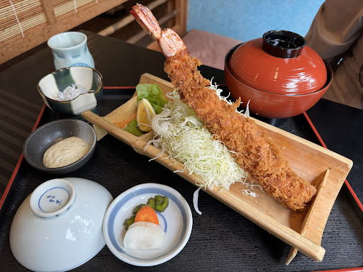 This is a classy Tonkatsu place which also serves jumbo fried shrimps and sashimi. Parking is conveniently in front of the restaurant and there is a garden with a Koi pond. Many seats are comfortably separted in semi private compartments. We had the special tonkatsu (which is available in different size portions), delicious sashimi and also the giant fried shrimps (maybe the largest i have ever eaten in my life so far). Both - the pork as well as the shrimps were extraordinary juicy inside while nice crispy on the outside. Very nice set menus and the waitress kindly made sure we did not order too many dishes. Thank you for the nice evening !